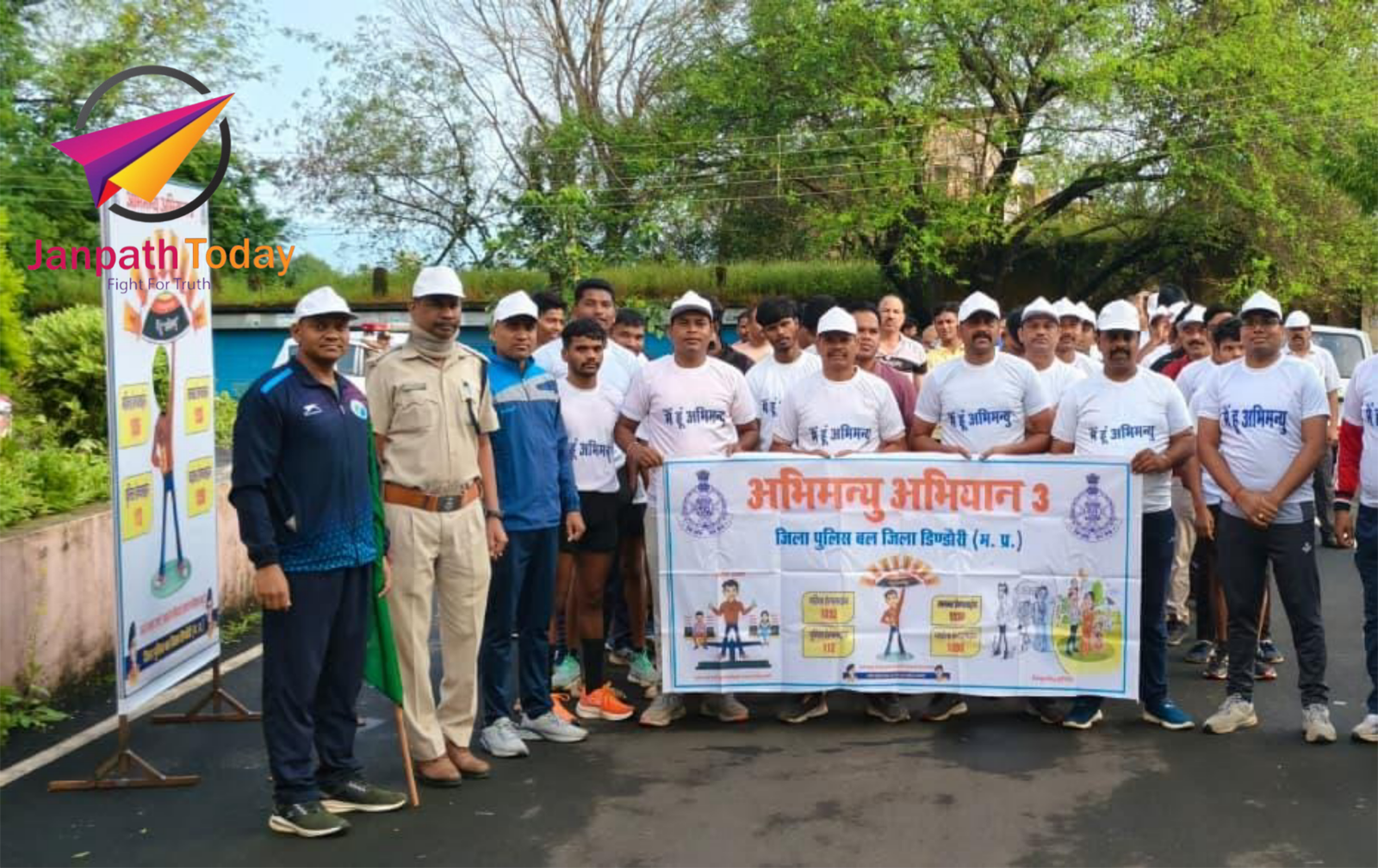 पुलिस मुख्यालय द्वारा संचालित “मैं हूँ अभिमन्यु-3” अभियान के तहत बुधवार को पुलिस अधीक्षक कार्यालय से पुरानी डिंडोरी बायपास तक मैराथन दौड़ का आयोजन किया गया।