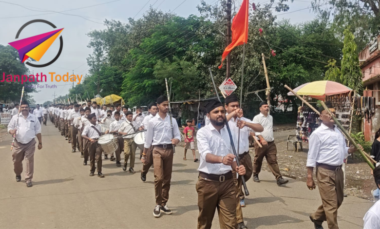संघ के 100 साल बेमिसाल,राष्ट्रीय स्वयंसेवक संघ ने मनाया विजयादशमी पर्व नगर की प्रमुख मार्गो से निकला पथ संचलन, पुष्प वर्षा कर किया स्वागत