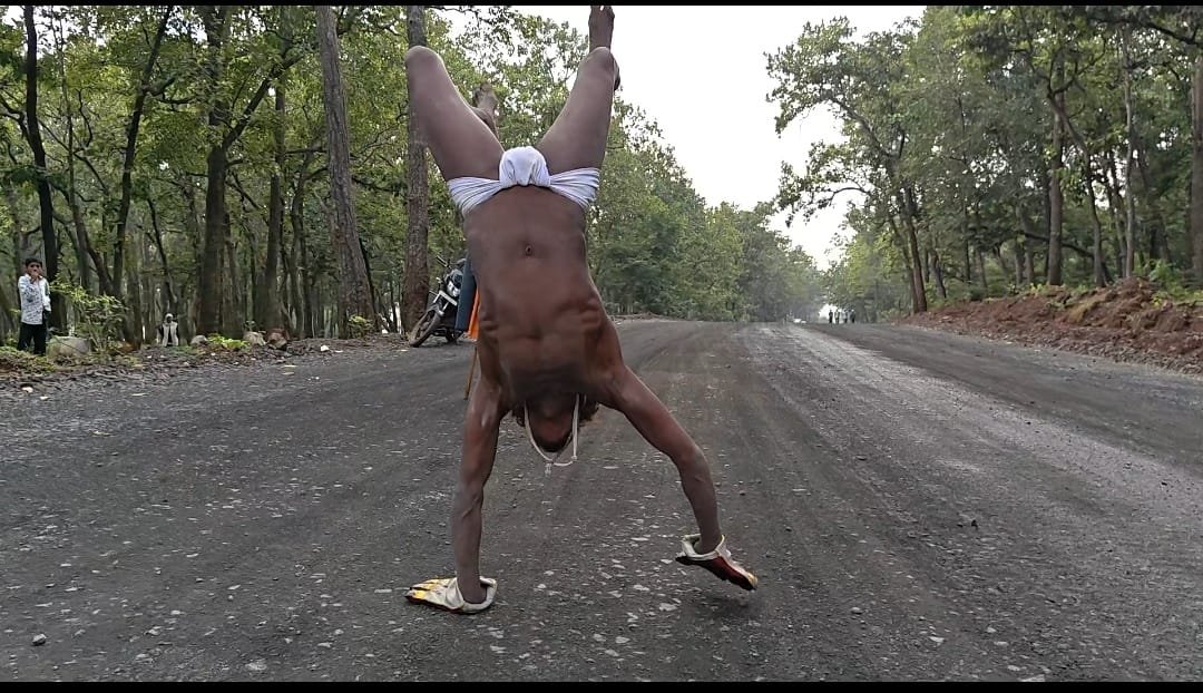 हाथों के बल चलकर माँ नर्मदा की परिक्रमा कर रहे हैं धरमपुरी महाराज
