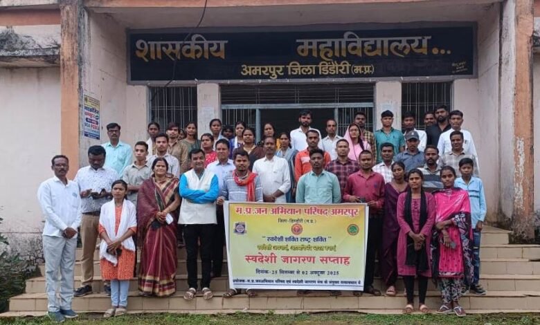मुख्यमंत्री सामुदायिक नेतृत्व क्षमता विकास कार्यक्रम अंतर्गत शैक्षणिक सत्र 2025-26 हेतु शासकीय महाविद्यालय अमरपुर में मध्य प्रदेश जनअभियान परिषद द्वारा स्वदेशी जागरण अभियान का आयोजन किया गया। यह कार्यक्रम परिषद के जिला समन्वयक श्री धर्मेंद्र चौहान के मार्गदर्शन में सफलतापूर्वक संपन्न हुआ।