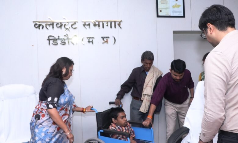 नव नियुक्त कलेक्टर डिण्डौरी श्रीमति अंजू पवन भदौरिया की जनसुनवाई में ग्राम पंचायत मुढियाकला जनपद पंचायत डिण्डौरी के दिव्यांग सुग्रीव पिता प्रेमलाल द्वारा कान में सुनाई न देने व पैरों की अपंगता की समस्या को लेकर पहुंच कलेक्ट्रेट पहुंचा। जन सुनवाई में कलेक्टर ने शिकायतकर्ता की समस्या को त्वरित संज्ञान में लेते हुये सामाजिक न्याय एवं दिव्यांंगजन सशक्तिकरण विभाग को तत्काल निराकरण करने के निर्देश दिये । कलेक्टर की तत्परता से यथा स्थल पर आवेदक के कॉन की जांच करायी गई और कॉन की मशीन एवं व्हील चेयर उपलब्ध करायी गयी । आवेदक के दिव्यांग प्रमाण पत्र हेतु दिव्यांंगता का पुर्नपरीक्षण कर दिव्यांगता के प्रतिशत हेतु कार्यवाही के निर्देश स्वास्थ्य विभाग को दिये गये ।