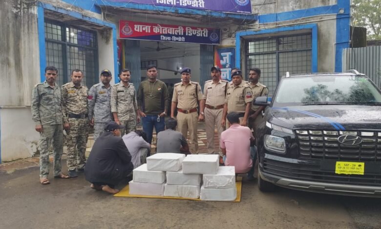 कोतवाली डिण्डौरी पुलिस ने पकड़ा अवैध शराब का जखीरा, हुंडई वैन्यू कार के साथ 04 आरोपी गिरफ्तार