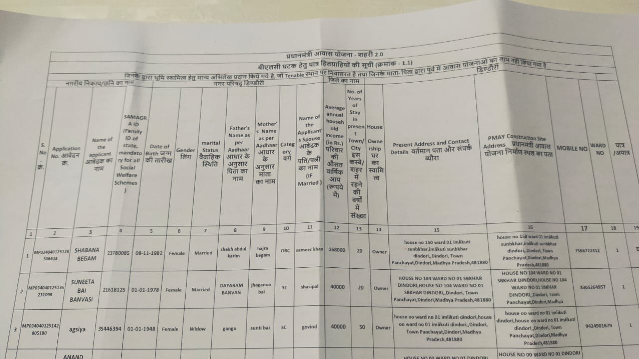 नगर परिषद डिंडौरी द्वारा प्रधानमंत्री आवास योजना (शहरी) बी.एल.सी. घटक 2.0 के अंतर्गत पात्र हितग्राहियों की सूची जारी कर दी गई है। जारी सूचना के अनुसार नगर परिषद क्षेत्र के वार्ड क्रमांक 01 से 15 तक कुल 88 हितग्राहियों के आवेदन प्राप्त हुए थे जिनमें से 32 पात्र, 36 अपात्र तथा 20 पक्के मकान वाले अपात्र हितग्राही पाए गए हैं।