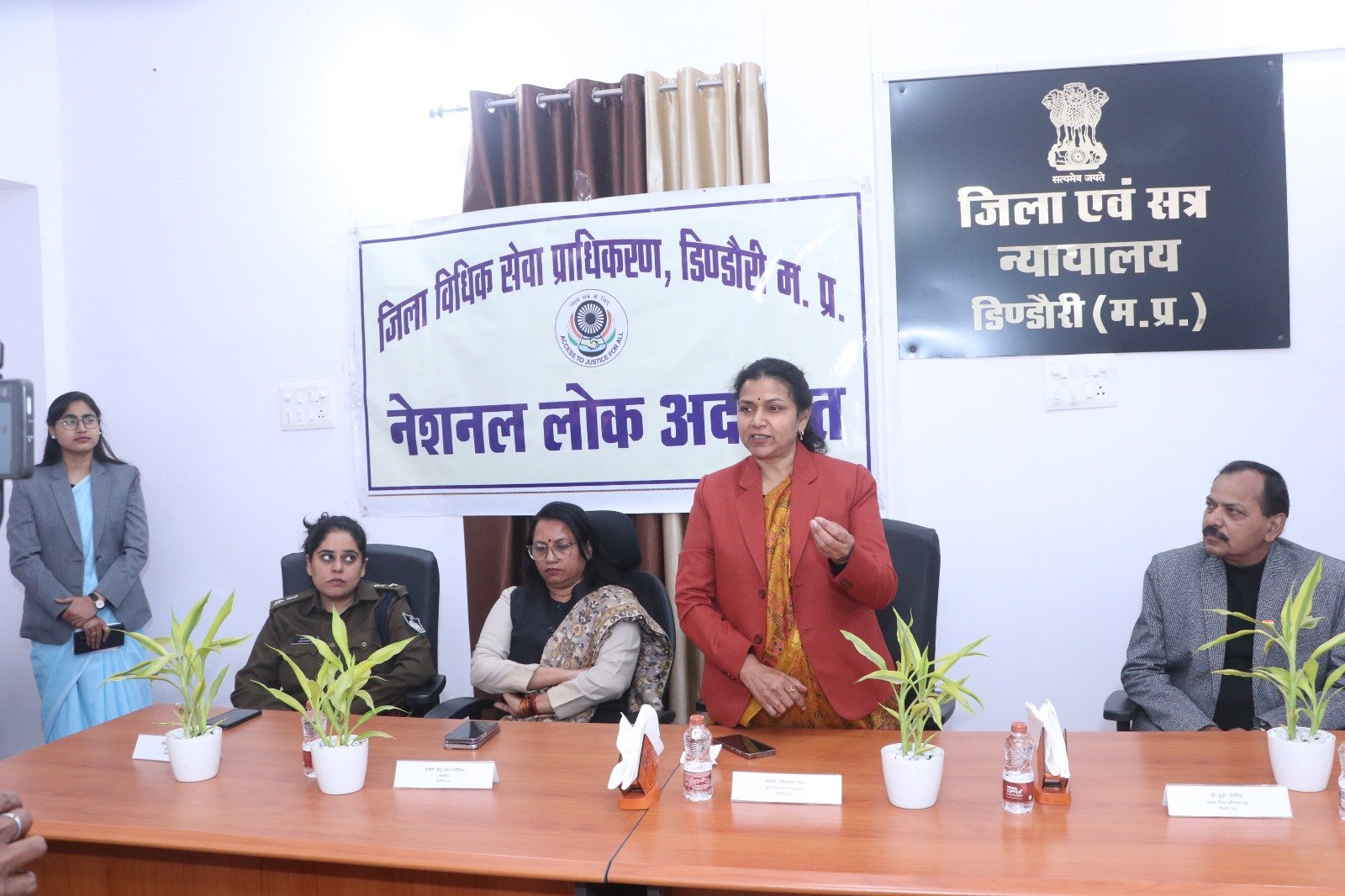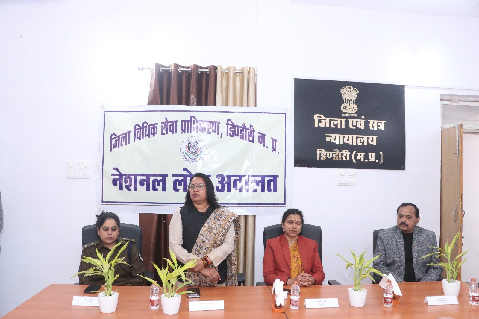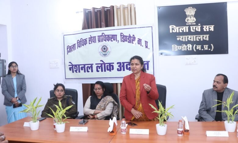 जनपथ टुडे डिण्डौरी 13 दिसम्बर 2025 – राष्ट्रीय विधिक सेवा प्राधिकरण नई दिल्ली व मध्य प्रदेश राज्य विधिक सेवा प्राधिकरण जबलपुर के निर्देशन में एवं प्रधान जिला एवं सत्र न्यायाधीश / अध्यक्ष जिला विधिक सेवा प्राधिकरण डिण्डौरी श्रीमति शशिकान्ता वैश्य के मार्गदर्शन में नेशनल लोक अदालत का आयोजन दिनांक 13 दिसंबर 2025 को किया गया। लोक अदालत का शुभारंभ प्रधान जिला एवं सत्र न्यायाधीश / अध्यक्ष जिला विधिक सेवा प्राधिकरण श्रीमति शशिकान्ता वैश्य, कलेक्टर श्रीमति अंजू पवन भदौरिया, पुलिस अधीक्षक श्रीमति वाहनी सिंह एवं अध्यक्ष अधिवक्ता संघ यू.के पटेरिया द्वारा माँ सरस्वती की छायाचित्र पर मार्त्यापण एवं दीप प्रज्ज्वलित कर किया गया।