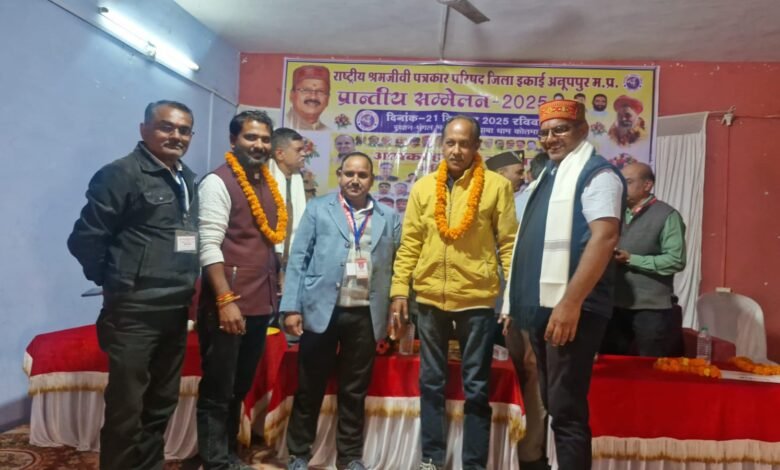 जनपथ टुडे डिण्डौरी 21 दिसम्बर 2025 – अनूपपुर जिले के कोतमा में राष्ट्रीय श्रमजीवी पत्रकार परिषद का प्रांतीय सम्मेलन भव्यता पूर्ण रूप से संपन्न हुआ।