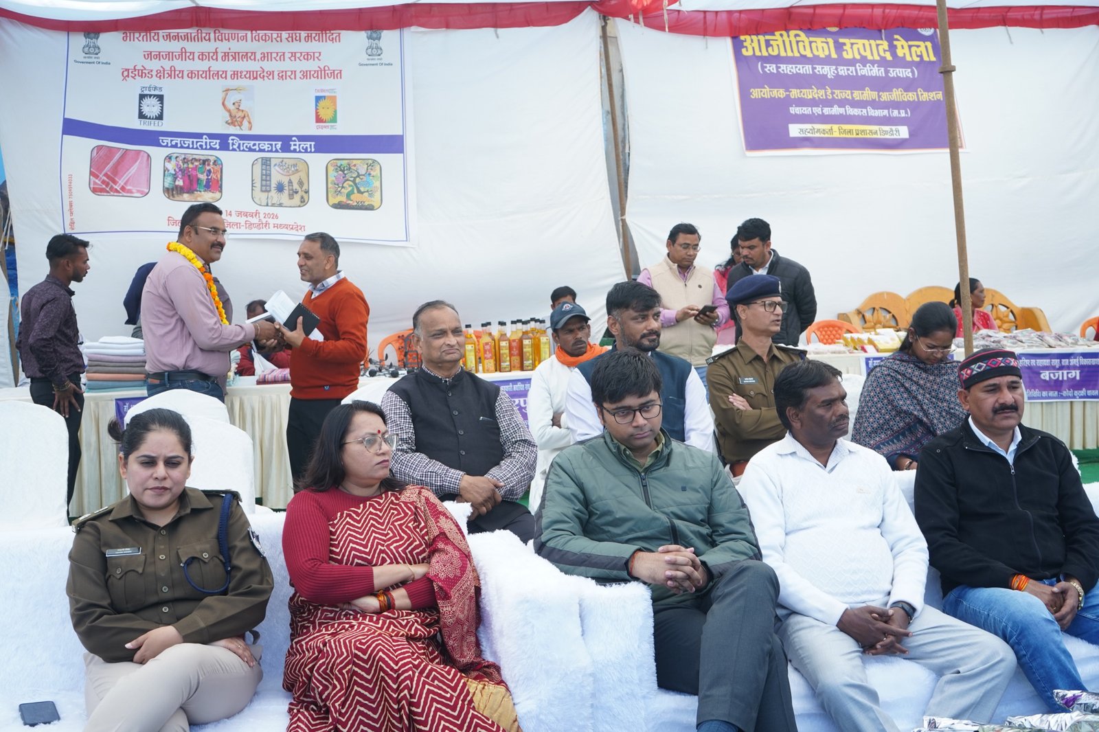 जनपथ टुडे डिण्डौरी 14 जनवरी 2026 – नर्मदा डैम घाट डिंडोरी में बुधवार को अजीविका मेला सह जनजातीय उत्पाद मेला का आयोजन किया गया। मेले का मुख्य उद्देश्य स्व सहायता समूहों द्वारा निर्मित उत्पादों को बाजार उपलब्ध कराकर लोकल फॉर वोकल को बढ़ावा देना रहा। इस अवसर पर जिले की स्व सहायता समूहों द्वारा तैयार उत्पादों के विक्रय हेतु 30 स्टॉल लगाए गए।