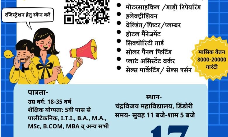 परवाज – युवा संगम – डिंडौरी में 17 फरवरी को लगेगा रोजगार मेला, 20 से अधिक कंपनियां देंगी नौकरी के मौके