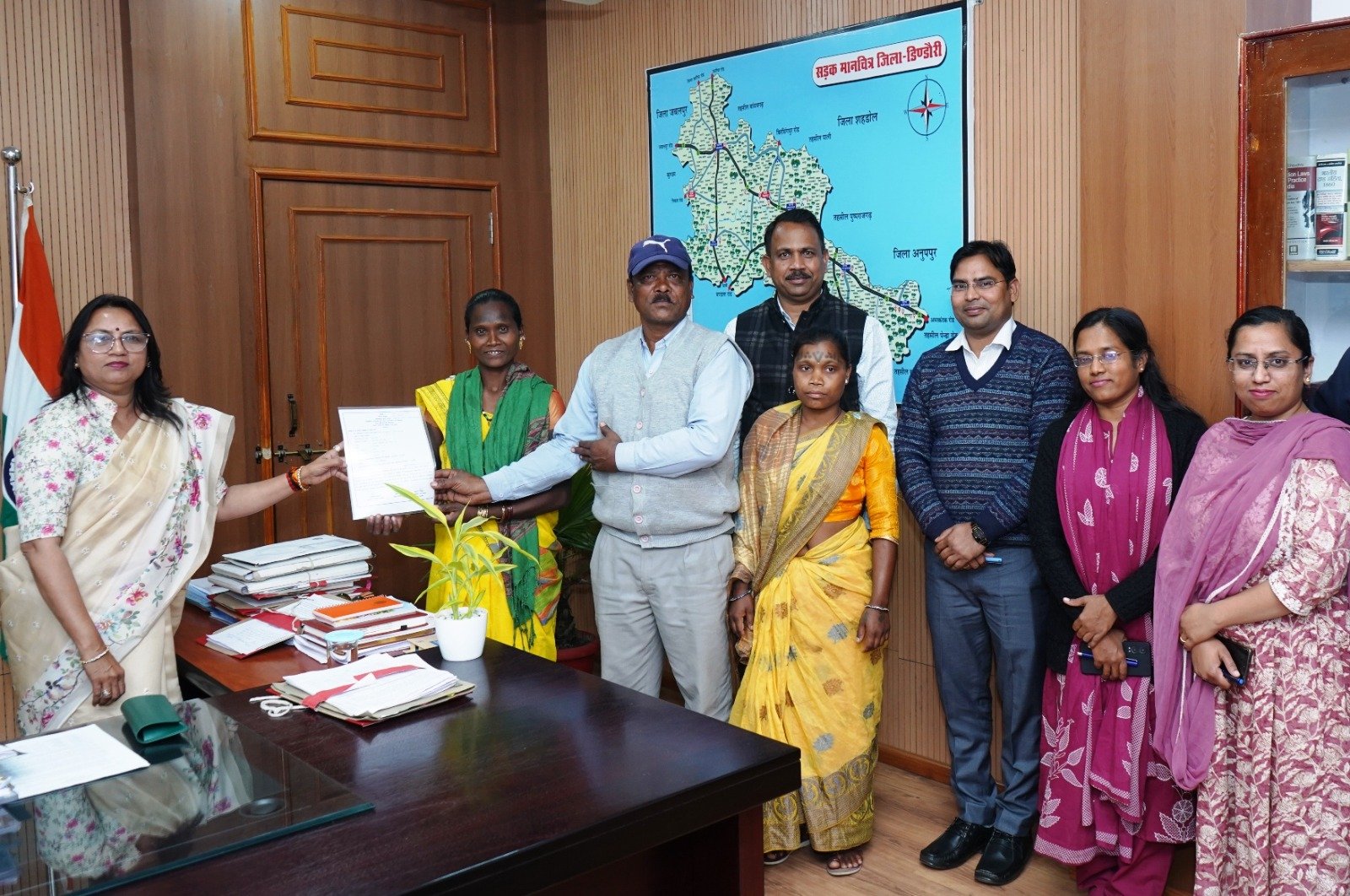 मिलेट्स क्वीन लहरी बाई को वनाधिकार पत्र प्रदान करती कलेक्टर अंजू पवन भदोरिया
