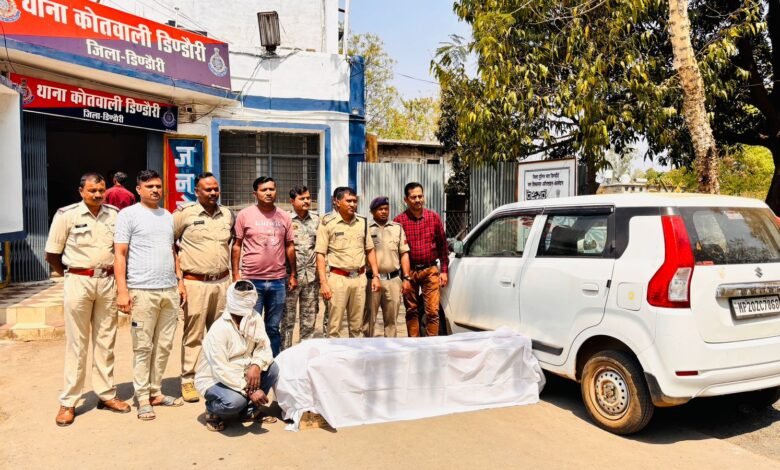 डिण्डौरी पुलिस की बडी कार्यवाही – 130 लीटर अंग्रेजी शराब एवं वैगनआर वाहन जप्त, 01 आरोपी गिरफतार