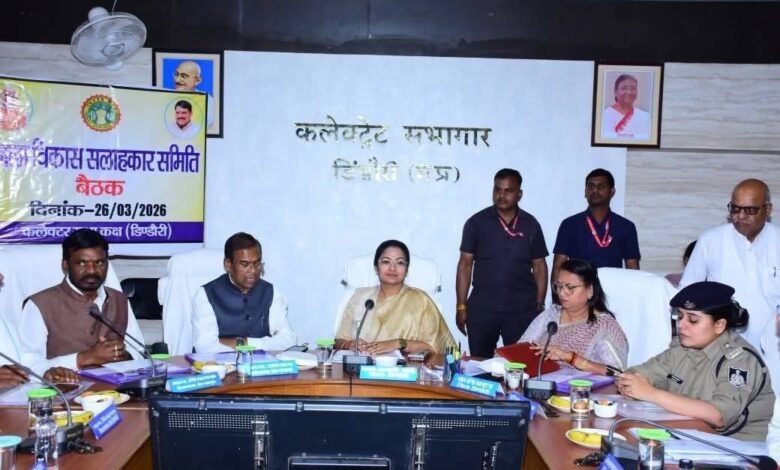 जनपथ टुडे डिंडोरी 26 मार्च 2026 – जिले के समग्र विकास को लेकर अहम बैठक आयोजित की गई। कलेक्टर कार्यालय सभाकक्ष में आयोजित जिला विकास सलाहकार बोर्ड की बैठक में प्रभारी मंत्री श्रीमती प्रतिमा बागरी ने सहभागिता कर जनकल्याणकारी योजनाओं की प्रगति की समीक्षा की।