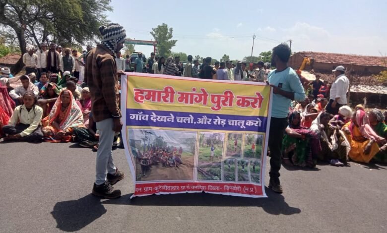 जनपथ टुडे डिंडोरी 9 अप्रैल 2026 – डिंडोरी जिले के उमरिया वन ग्राम कुटेली दादार क्षेत्र में नेशनल हाईवे NH-45 की जर्जर हालत को लेकर ग्रामीणों का गुस्सा फूट पड़ा। अमरकंटक–जबलपुर मार्ग पर सैकड़ों ग्रामीणों ने सड़क पर बैठकर चक्का जाम कर दिया, जिससे दोनों ओर वाहनों की लंबी कतारें लग गईं और यातायात पूरी तरह प्रभावित हो गया।